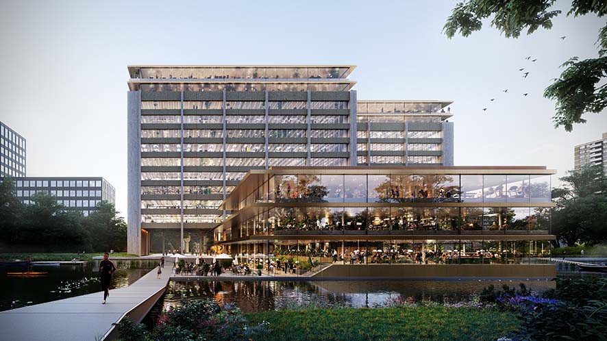 HC KP is bij het project in de ontwerpfase aangehaakt, waarbij verschillende varianten klimaatplafonds zijn besproken. Zo zijn diverse klimaatplafondeilanden uitgewerkt en daarnaast ook de traditionele, gesloten bandrasterplafonds. Voor het entreegebied is veel aandacht besteed aan maatwerkoplossingen, waarbij verschillende unieke materialen zijn bemonsterd. Op de kantoorverdiepingen is uiteindelijk gekozen voor de traditionele gesloten bandrasterplafonds, waarmee een goede invulling wordt gegeven aan de flexibiliteit van het pand. De plafonds zullen in meerdere kleuren worden uitgevoerd.