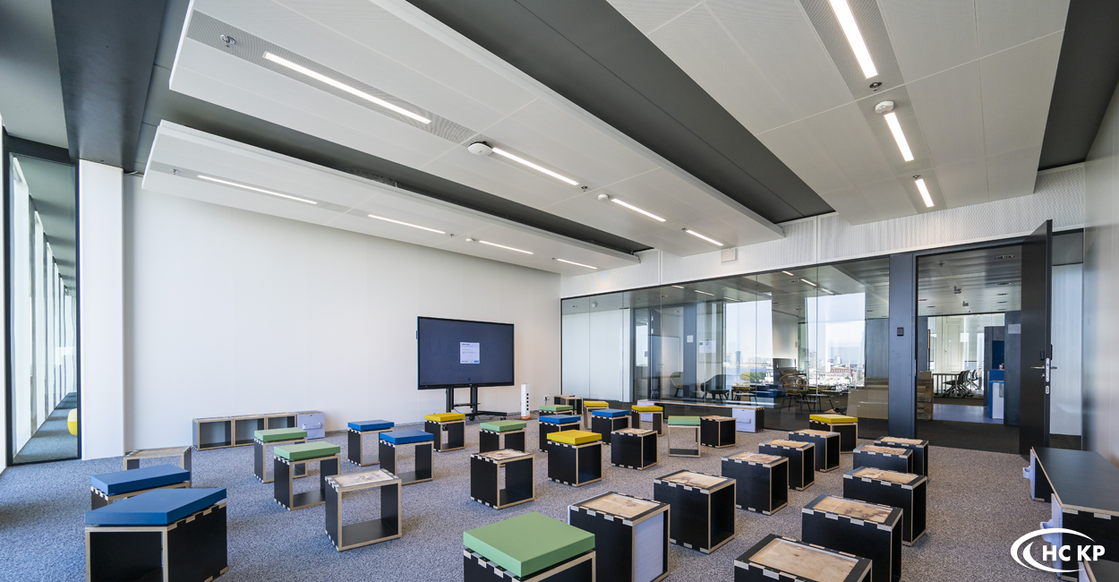 HC KP is vroeg in het ontwerptraject aangehaakt bij de ontwerpende partijen. Het is een lang en intensief traject geweest om alle benodigde facetten te integreren in de gerealiseerde klimaatplafonds. Dit komt doordat er hoge eisen zijn gesteld aan; de flexibiliteit van het gebouw, het klimaat, de ruimteakoestiek, de luchtverdeling en de verlichting. Dit komt allemaal samen in het klimaatplafond, tezamen met natuurlijk de overige inbouwcomponenten zoals een sprinklerinstallatie.
