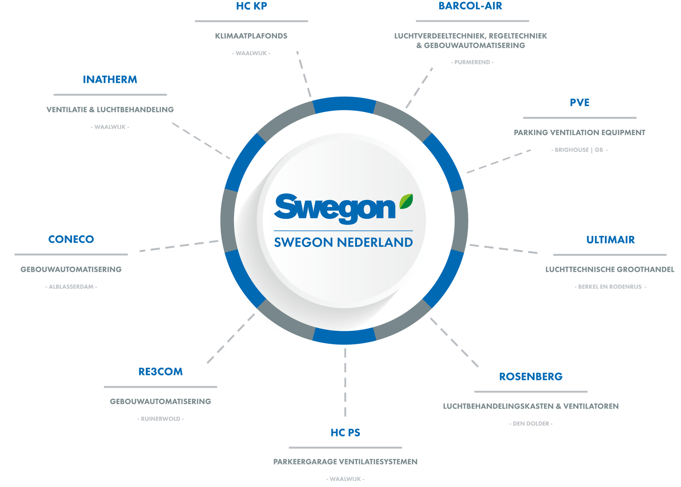 Innovatief, betrouwbaar, maatschappelijk verantwoord, milieubewust en betrokken. Het zijn enkele kernwaarden die de bedrijven van Swegon Nederland haar klanten te bieden hebben. Verspreid over 8 locaties in Nederland en 1 locatie in het buitenland zijn meer dan 400 medewerkers dagelijks betrokken bij de uitwerking van specialistische vraagstukken op het gebied van klimaattechniek. Sinds augustus 2024 maakt Swegon Nederland (toen nog HC Groep) onderdeel uit van Swegon.